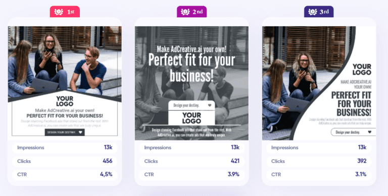 - Improved CTR: Over 95% of users experience improved click-through rates within their first month of using AdCreative.ai’s creatives.
